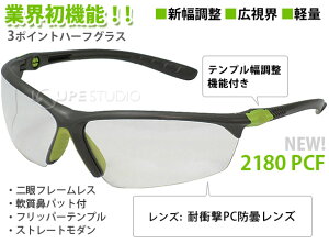保護メガネ 3ポイントハーフグラス 2180 PCF 幅調整OK 防塵 花粉 メガネ おしゃれ ゴーグル 花粉症対策 アイケア スペクタクル形 ウィルス対策 インフルエンザ 飛沫 感染 予防